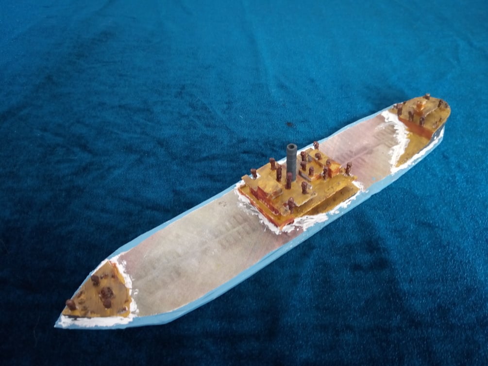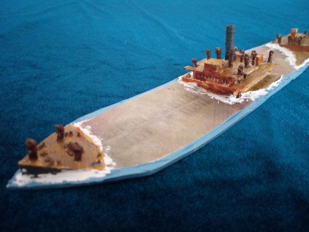 Unpainted 3D printed model of Blockship. This is based upon my Ferris Cargo ship. The lifeboats shown in the picture will be removed from the model you get! You then need to glue the last image onto card (I can also send you this image) and then glue these parts to it. The sea effect is added with filler. The bow is modeled on a different plane to represent the ship having broken its back when sunk. The other pictures are to show the quality of the 3D print process.
