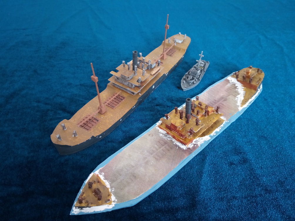 I have designed and printed this model myself at 1:300 scale. MTB and full size cargo ship (in pictures) not included, for scale only. Please note the cargo ship is exactly the same size (its just the perspective of the picture that makes it look smaller.